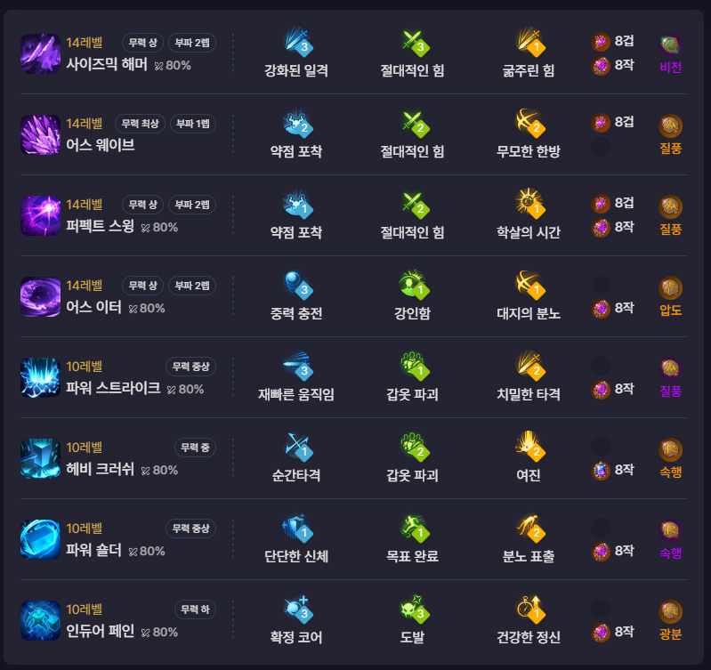 2) 영역강화 1포인트당 치적2% 증가(본인 치적에 맞게 채용)